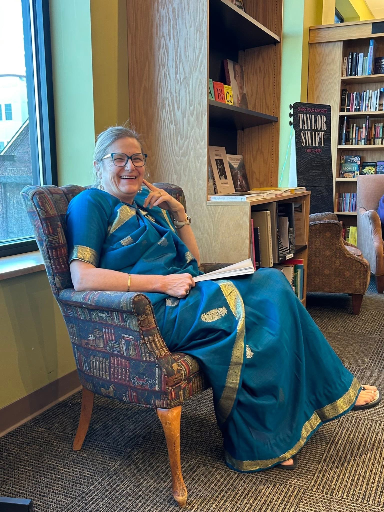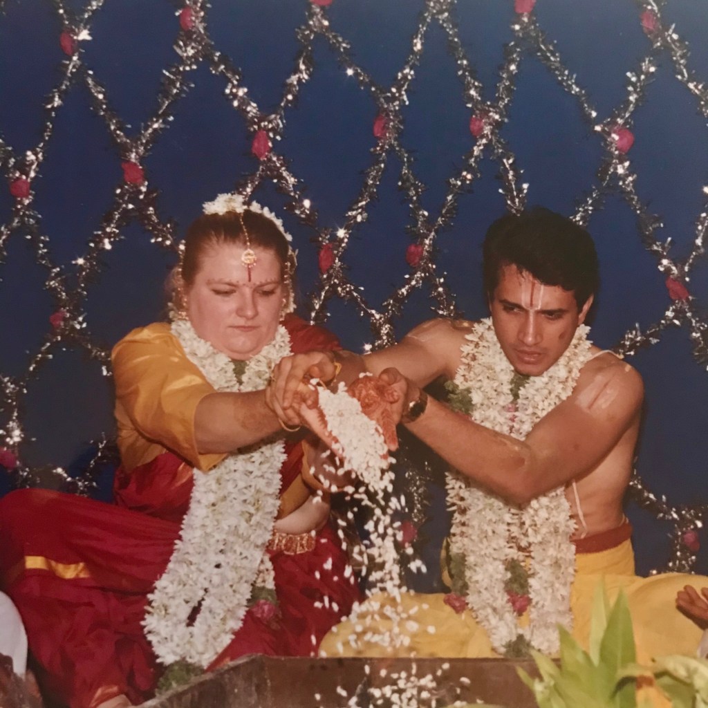 When people from India meet us for the first time, at some point they ask the inevitable question, “How did you meet?” They look at my husband a handsome brown man from Bombay who speaks Tamil, Hindi, English and some Gujarati—’enough Gujarati to eat,’ we say—and then they look at me, an outspoken curvy white woman from the American South with blonde hair and they can’t imagine why or how we became husband and wife. My husband of now 23 years should have had an arranged marriage by his parents to a nice, black haired light-skinned South Indian Tamil Iyengar woman who was trained in either Bharatanatyam dance or perhaps she was trained to play the stringed musical instrument called the vena. She would have been educated, had a professional job likely in business, would have been younger by 3 years, and also she would be strikingly beautiful, Bollywood worthy, and even then, she would have not been good enough for their first born son.