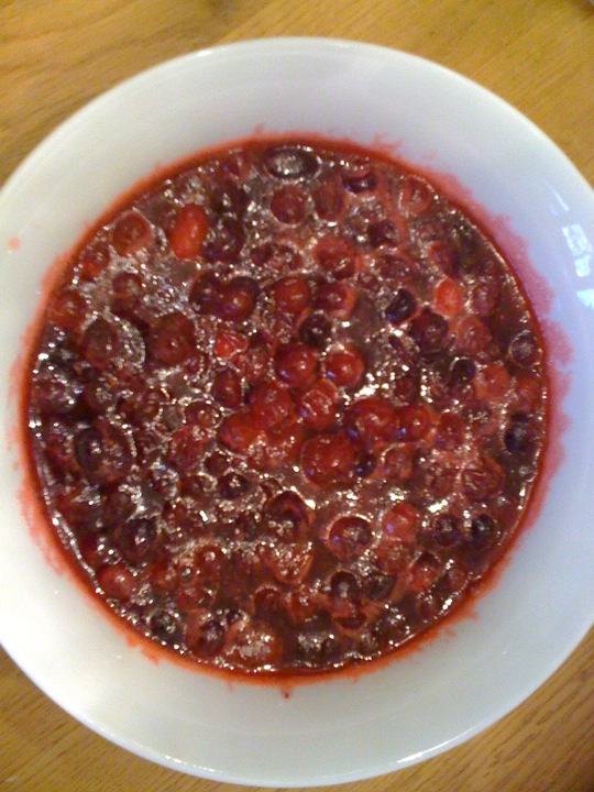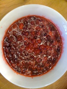 The kids take the bag of fresh cranberries and follow the simple instructions for making fresh cranberry sauce–it really is so easy a child old enough to be supervised at the stove can make it!  All you add is sugar, water, and the cranberries.