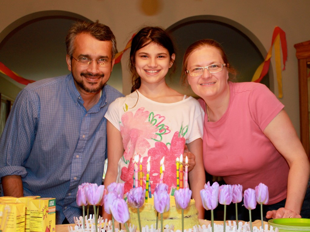 It starts with birthdays.  In India the question is, “What will you give in honor of your birthday?”  In America the question is, “What will you get for your birthday?”  Getting versus giving, this is the fundamental shift in understanding between our competing cultures of Indian values verses American values.  In our multicultural interfaith family, we deal with this tension between giving and getting, sharing and receiving, serving and being served.  By celebrating both Deepavali and Christmas, star birthdays and date birthdays, attending temple and churches we have strived to teach our children the values of service and activism.