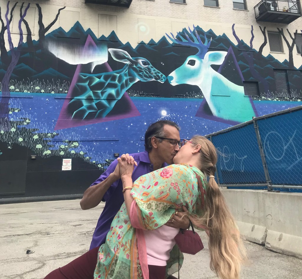 Mural chasing in Chicago lead us to a playful ‘dip and kiss”. This photo is now our daughter’s favorite.